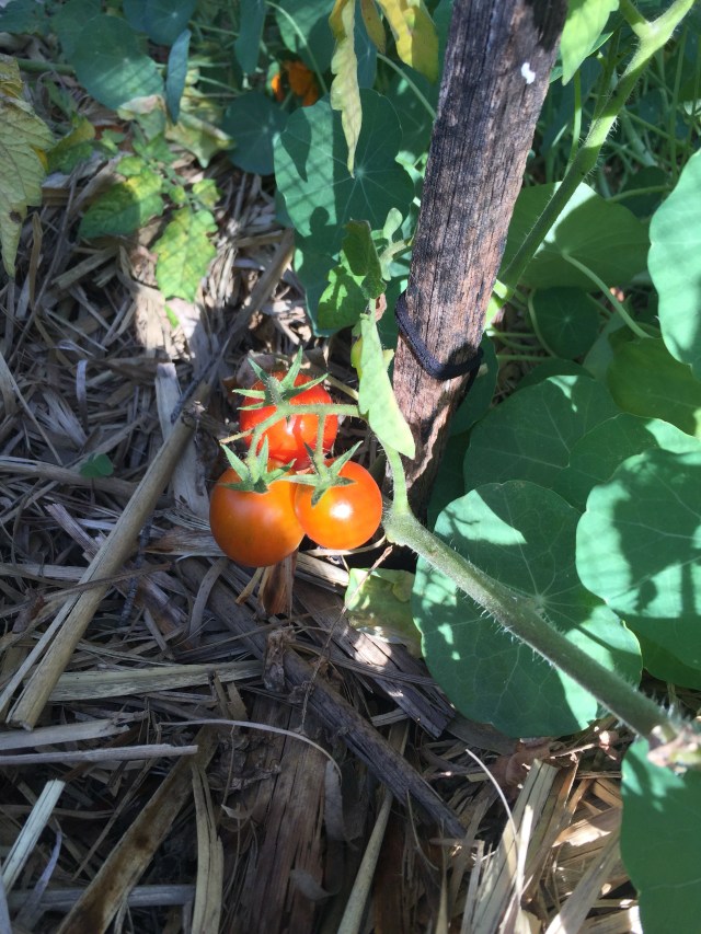 Tiny tomatoes. I chose to grow cherry tomatoes and mini Roma tomatoes this year as they only come at the shops in plastic punnets and I thought it would be a way of minimising our plastics use. The fact that it has taken three months to get any at all means that this plan hasn’t been successful but finally getting any tomatoes at all is exciting. So far they’ve all been eaten seconds after being picked.