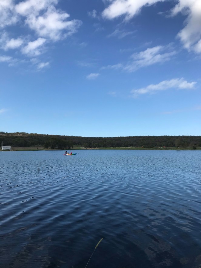 We borrowed the campground’s kayaks (take your own life jackets though for under 12s) and explored the dam from the water, swam in the dam, and did a few walks. There was phone reception there, but only just. I could send and receive text messages fine, but making phone calls was a bit random and internet access was spotty. This was probably a good level for getting away from it all. We certainly left quite relaxed, and I’m looking forward to going back and staying for longer next time.