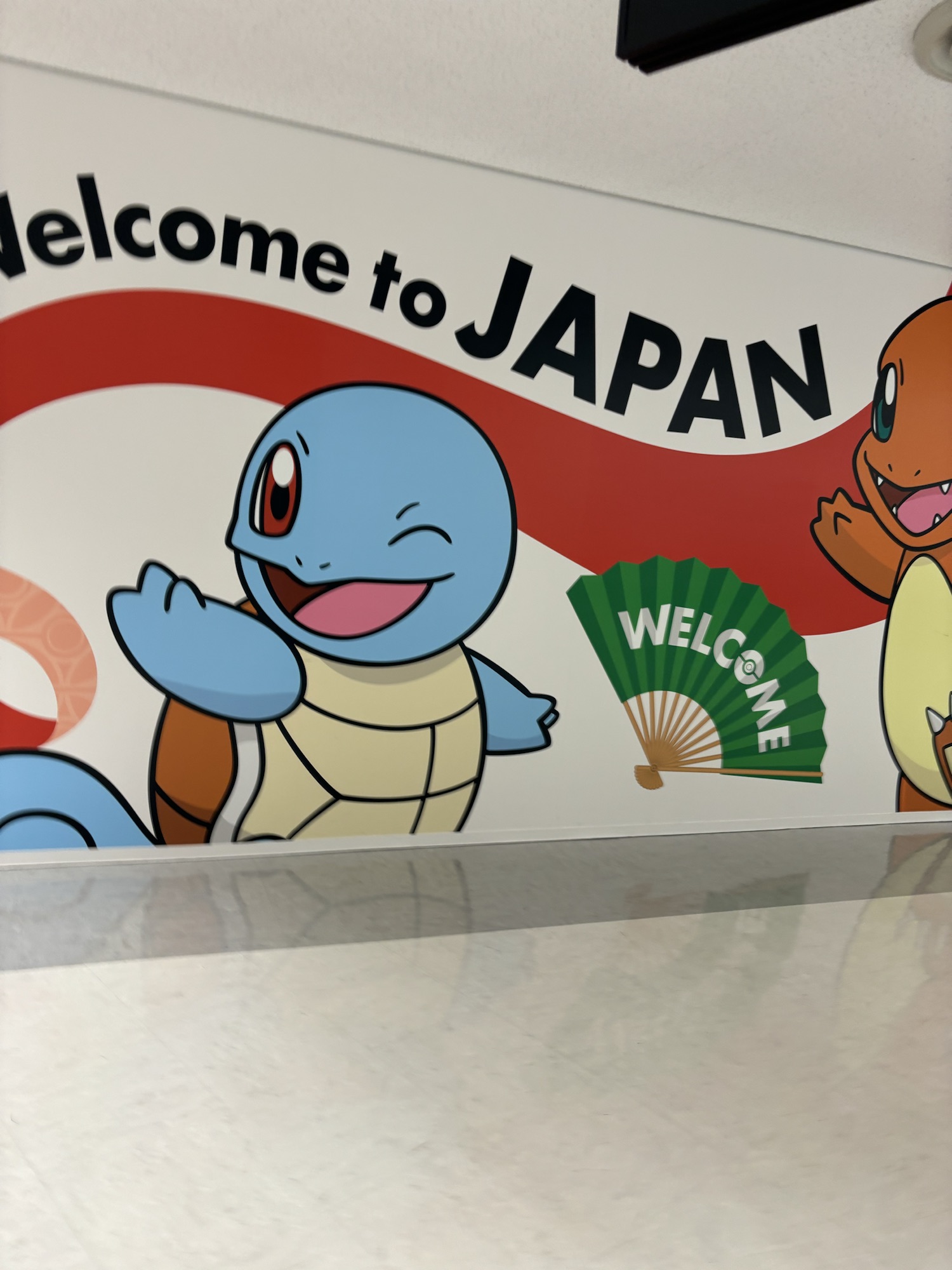 Then finally! Off on my own, on a long plane trip during which I read books and watched a movie, and then landed in Japan where we were greeted by Pokemon. I also ran into people I knew while we were waiting in the immigration queue.