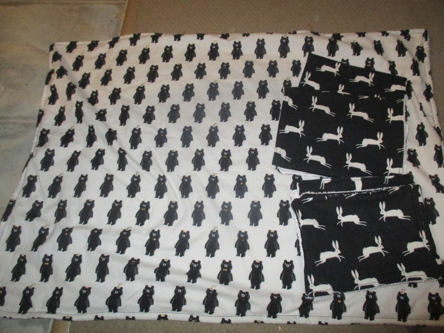 A very dear friend of mine had her first baby recently. I thought for months about what I could make for her. My sewing skills are still limited, although I am hoping to improve that soon. She said that she had enough blankets but this beautiful bear fabric seemed destined to be a blanket, so …
